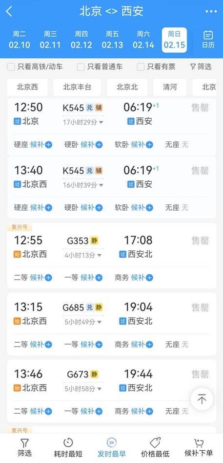 多趟夜间高铁从北京始发5天预售期2月11日可“捡漏”
