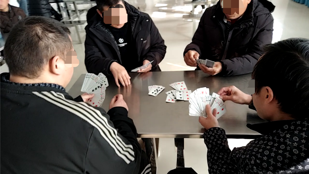2025年12月10日,襄阳宏安精神病医院住院的病人正在打“掼蛋”。 新京报记者 韩福涛 摄